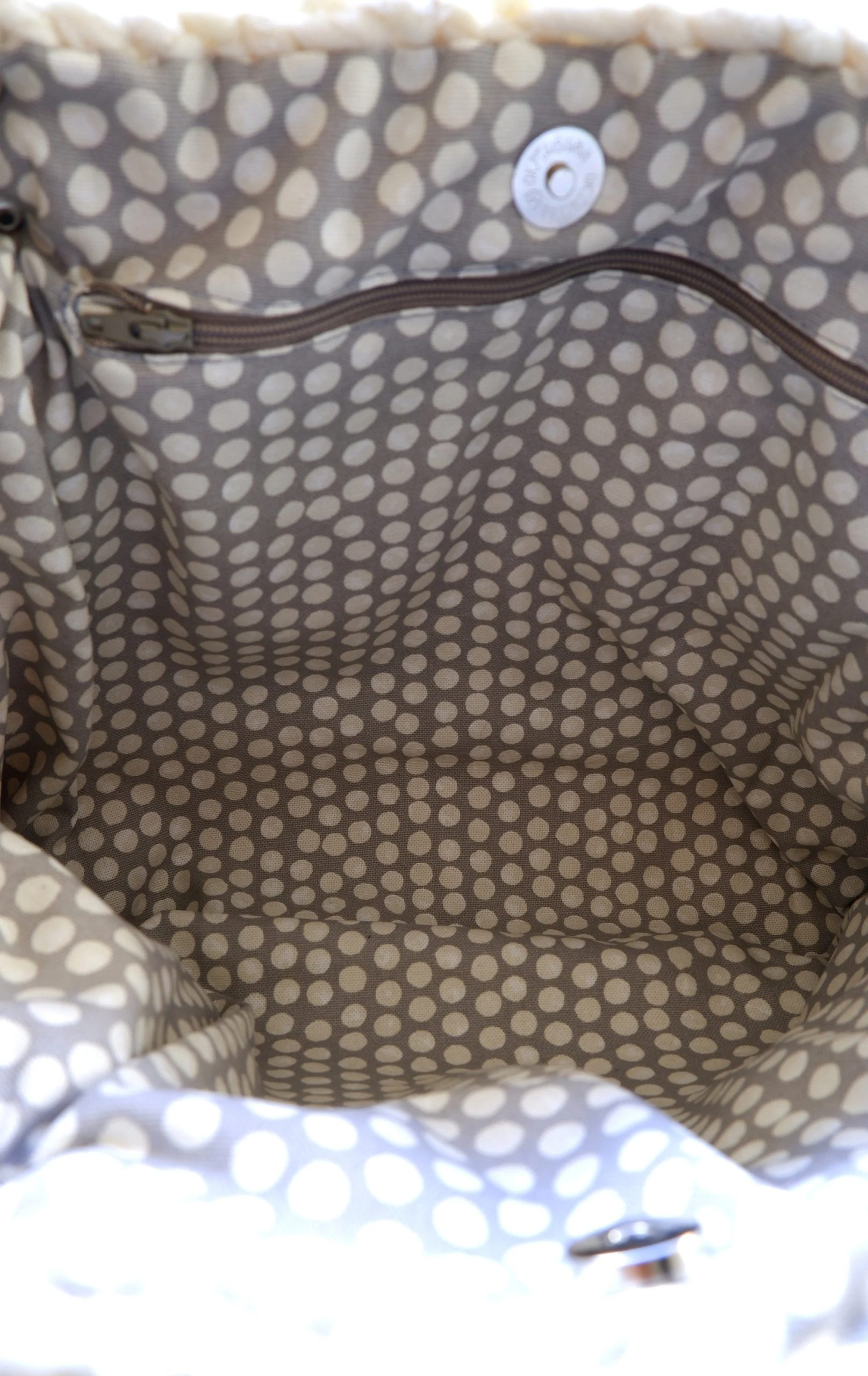 Slim Pale Straps – Simple, light-toned straps with subtle hardware balance the textured body and make the bag comfortable to carry on the shoulder.